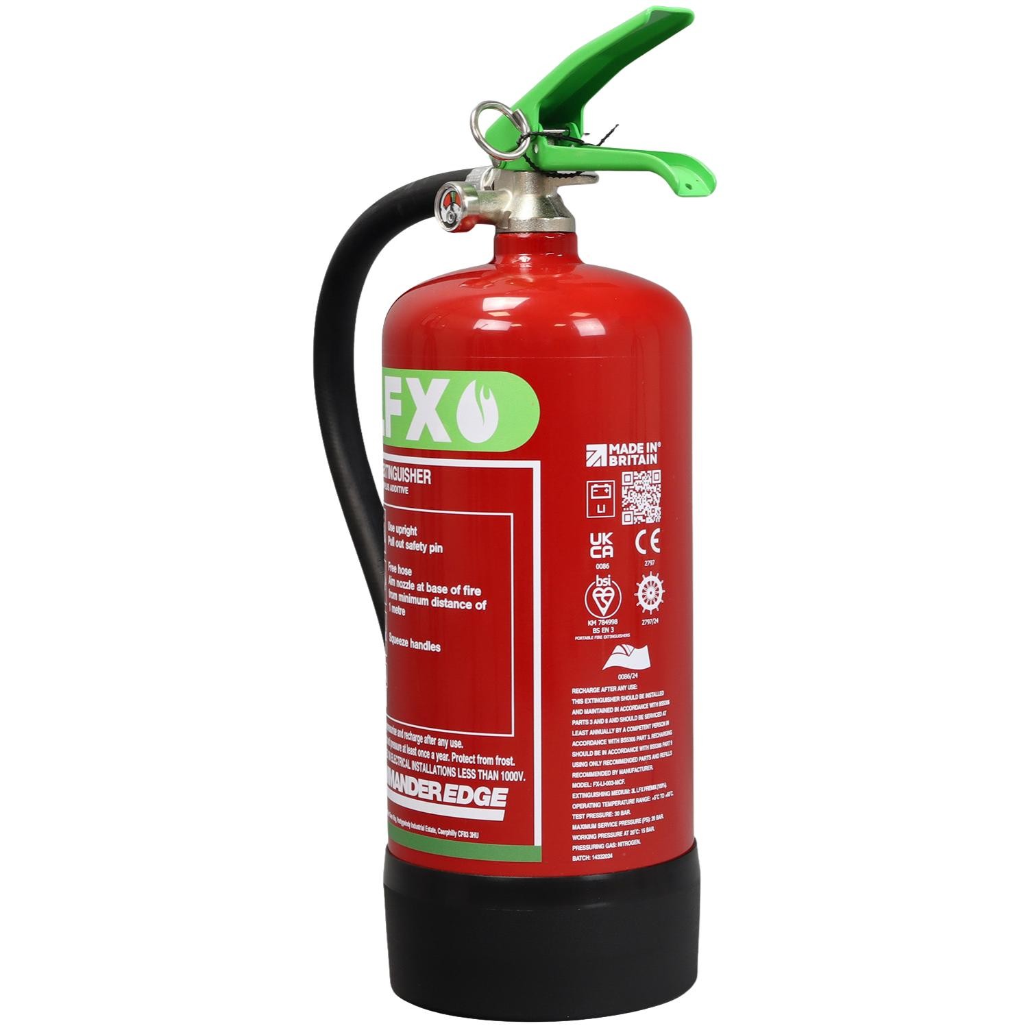 The CommanderEDGE LFX range of extinguishers are water-based, meaning they are Fluorine-free, whilst discharging as a foam which quickly absorbs the heat. As a result, the chain reaction which leads to thermal runaway breaks down, cooling down the battery and preventing other cells from overheating.