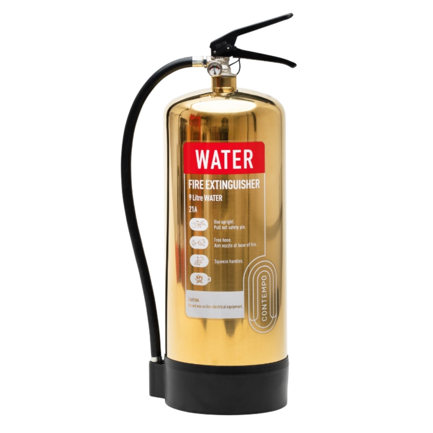 So, if you need something that you can rely on for tackling common fire hazards, but want to retain your property’s emphasis on style, then the Contempo Polished Gold 9 litre Water Extinguisher is just what you need.