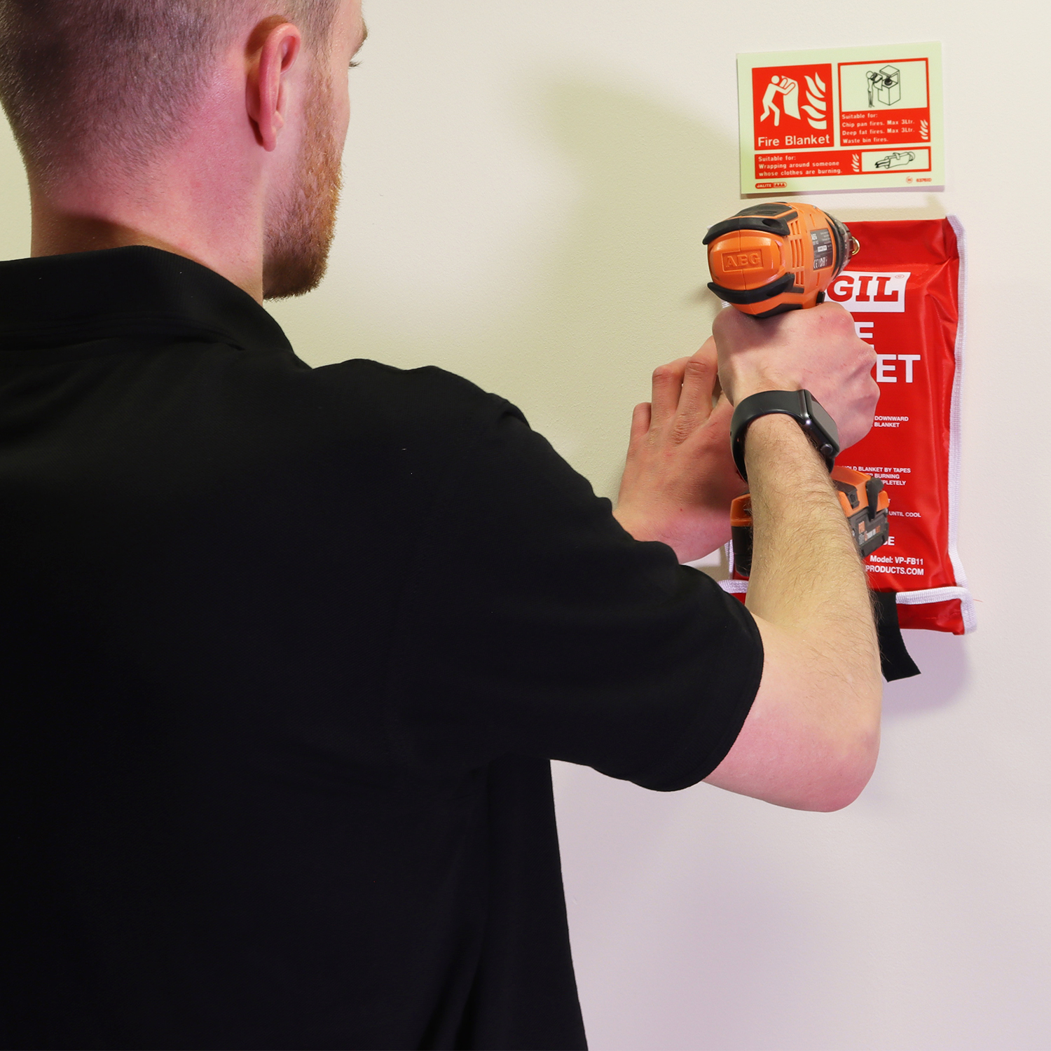 Fire blanket wall hanging or fixing for BS5306 part 8, and is for one of our service engineers to hang your brand new fire blanket (not included, but available to purchase separately here).
