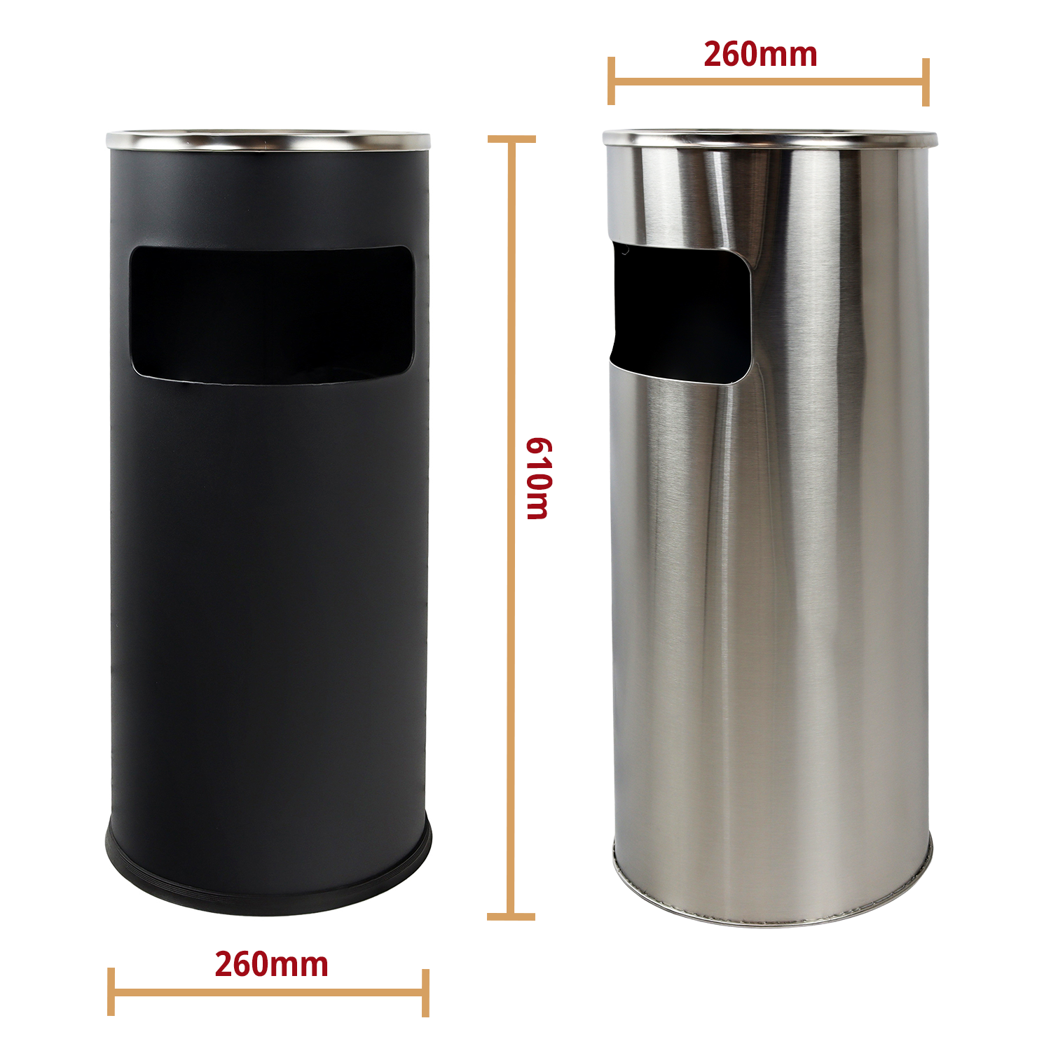 Made of stainless steel for Vigil Products, the lobby bin is rust and corrosion-resistant, is hard-wearing to prevent damage, and has a lightweight design which makes this easy to move around as and where required. The combined litter and cigarette bin is 600mm high with a total width of 250mm and is perfect for workplaces, shops, public buildings and other public spaces to prevent environmental contamination.