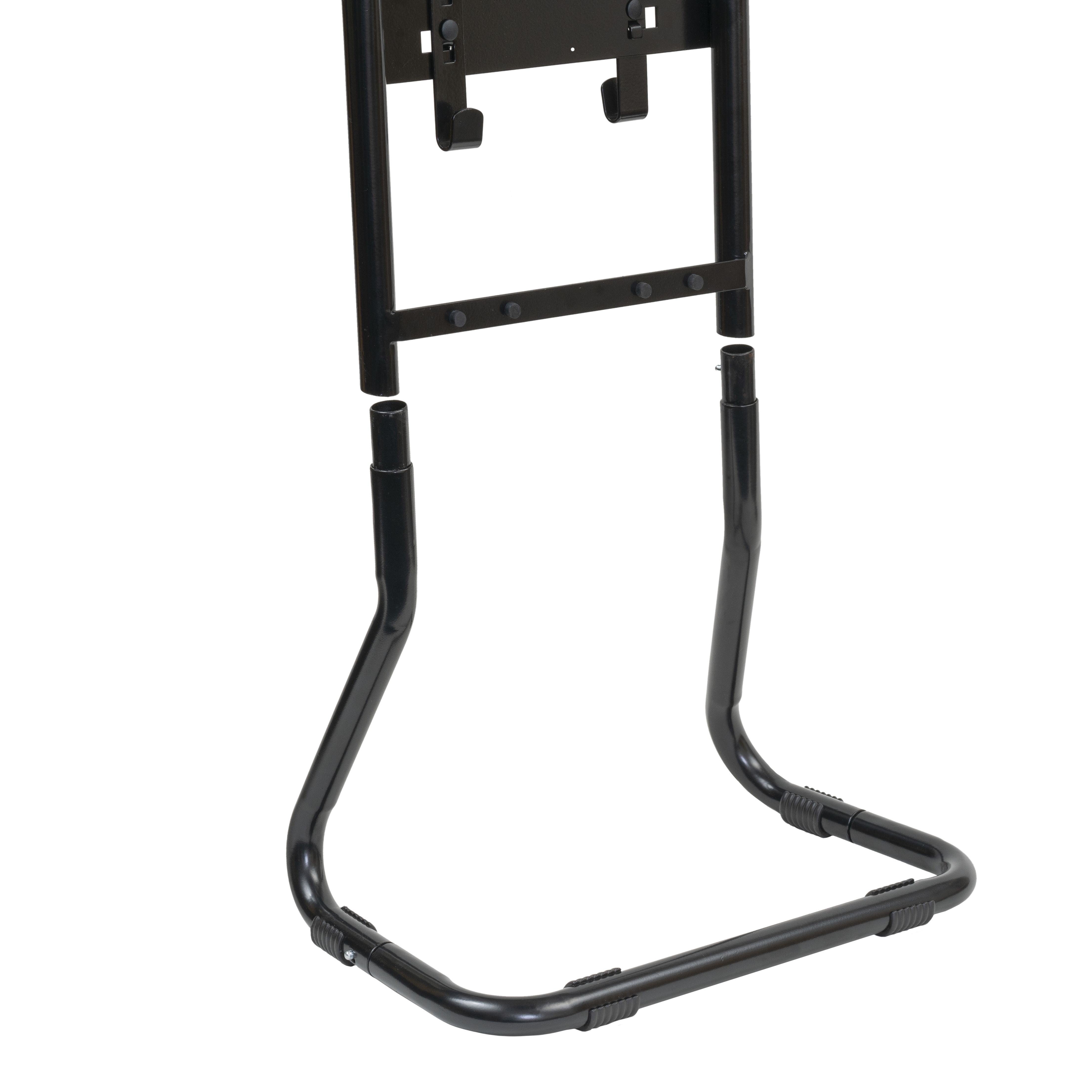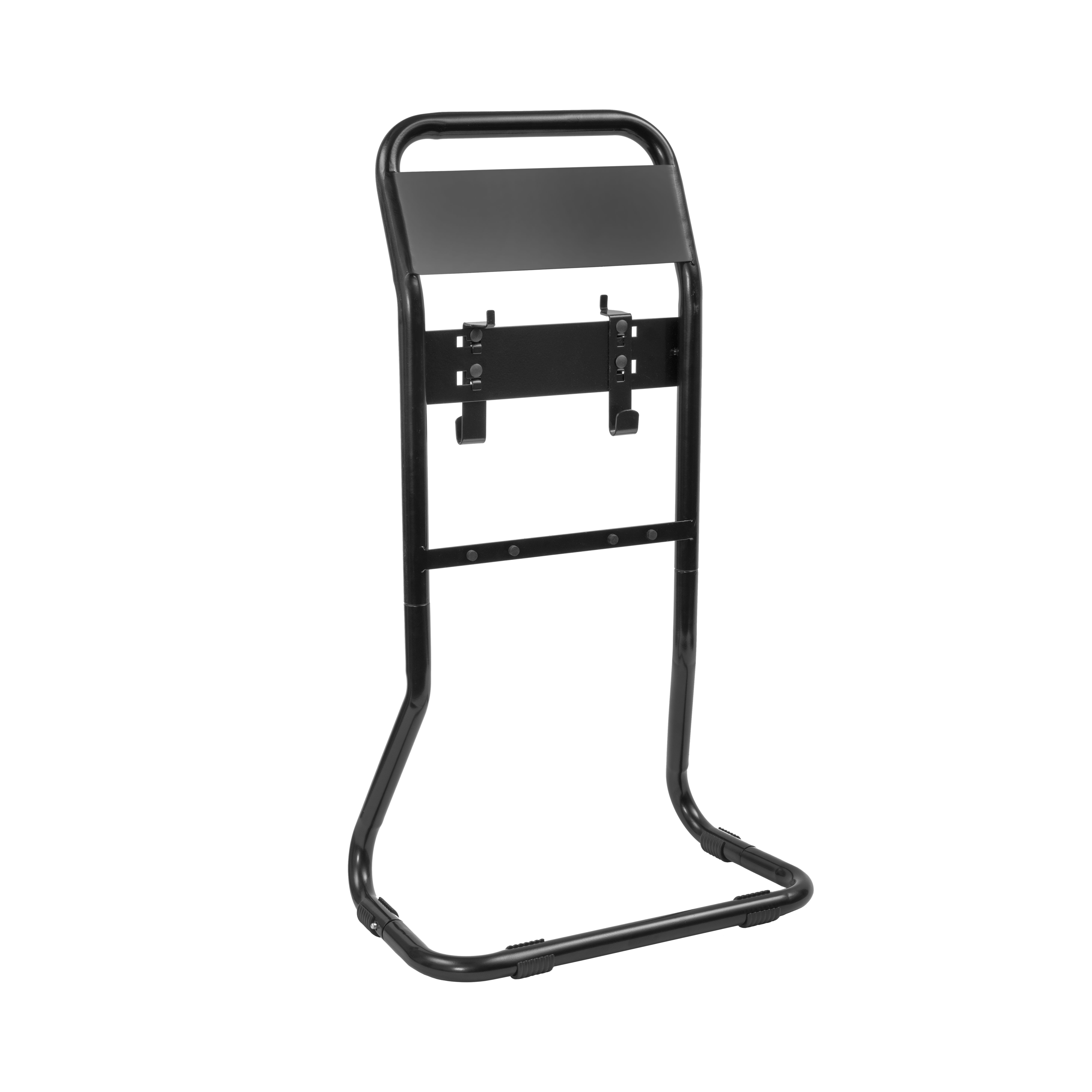 Efficiently store various types of fire extinguishers with the Compact Black Double Fire Extinguisher Stand, designed to store up to x2 fire extinguisher units for diverse settings. Its sleek and slimline tubular design allows it to blend in with modern environments while also standing out as a place for storing fire safety units.