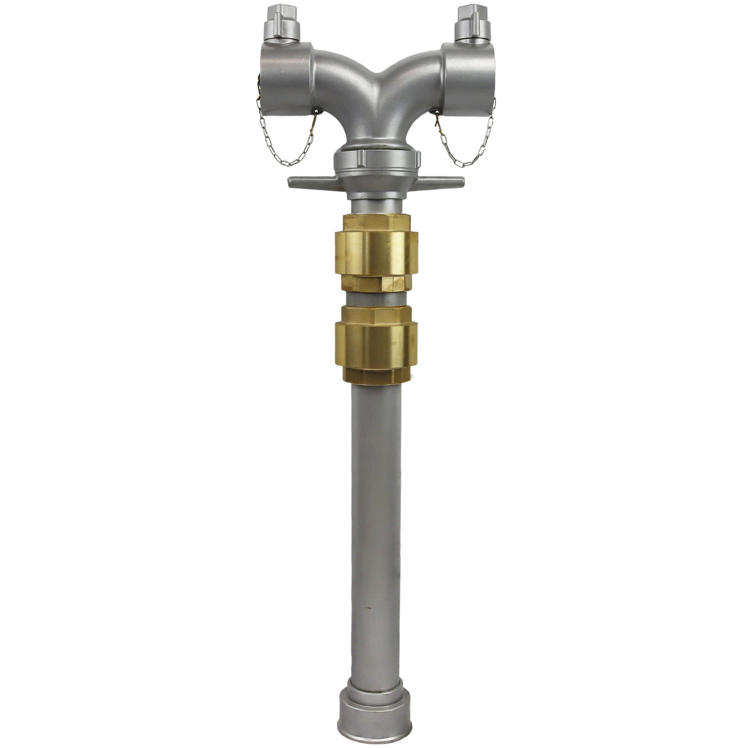 Our double fire hydrant standpipe with check valve is made from quality aluminium alloy and is a simple solution to bringing water above ground from a mains underground hydrant. The double head allows it to provide two standard UK 2.5" instantaneous outlets onto which you can securely connect multiple layflat fire hoses.