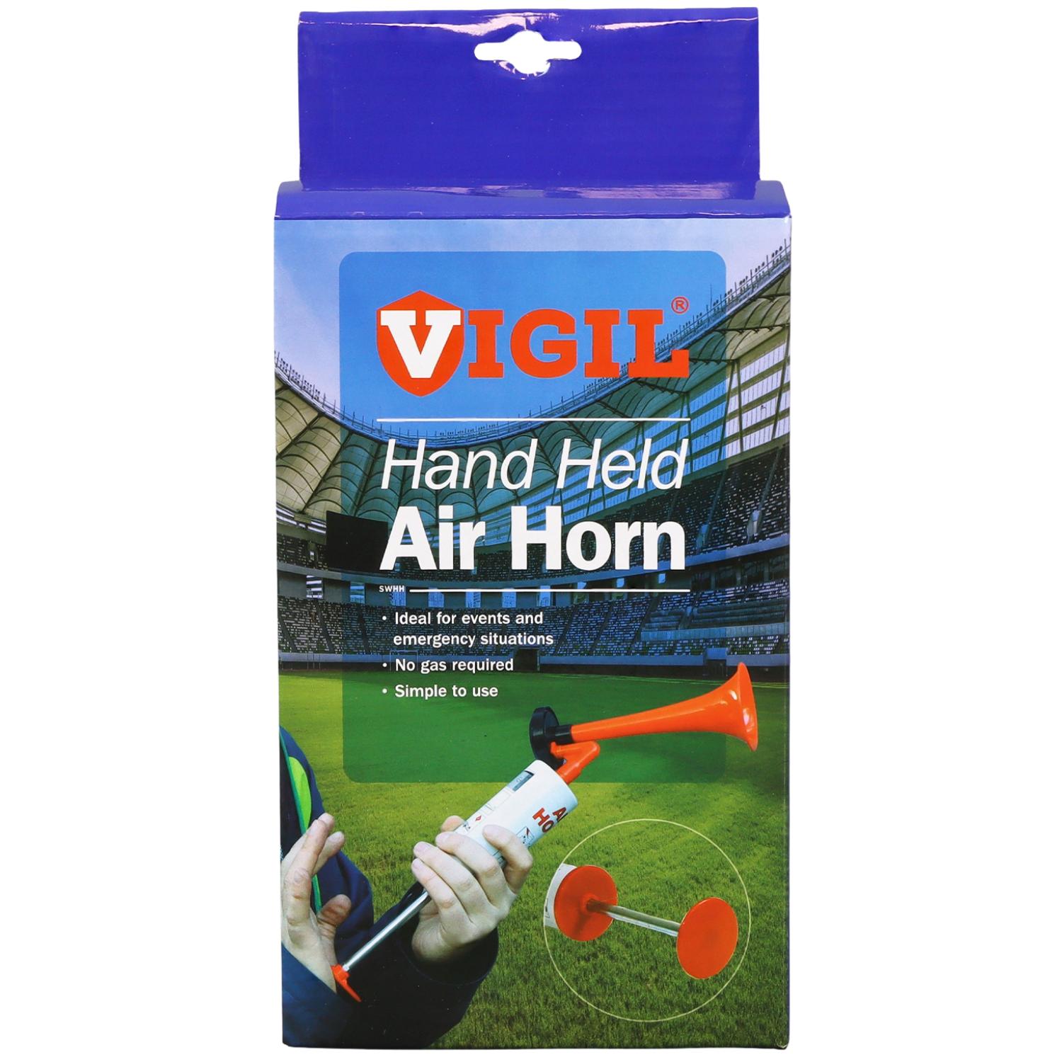 Once the horn has been screwed on one end, you then pull out the handle and then give a good pump – it is also suitable to be used over and over again in quick succession. When you’ve finished with it, screw the pump handle back in the closed position to prevent accidentally setting it off and making everyone jump. Manufactured for Vigil Products, it simply works by compressing air to make a sound, which is then made louder, with a maximum output of 130 Decibels.