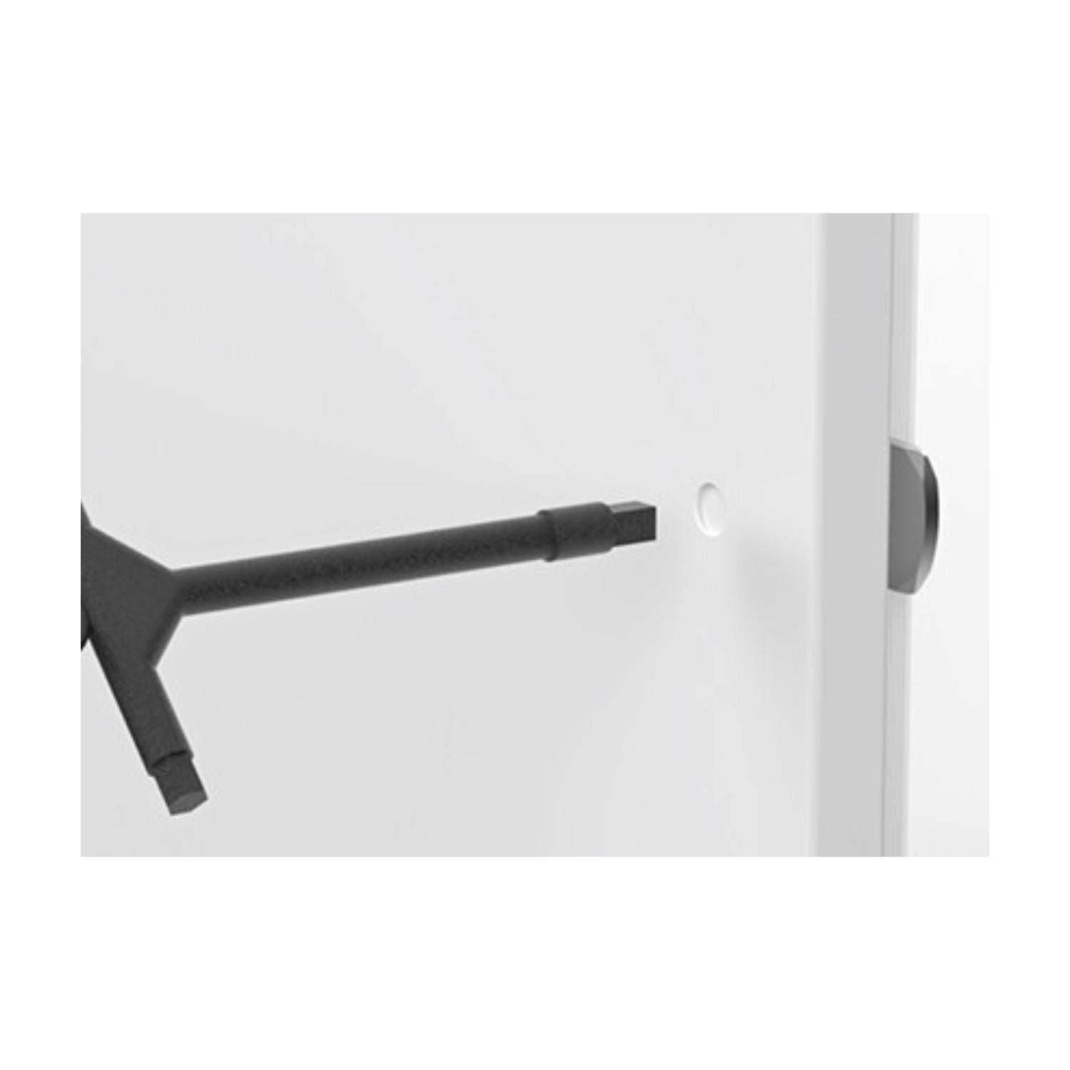 Unlike other plasterboard access panels, this is also reinforced around the lock area, which is often the first part of the panel to become damaged. On top of that, the keyhole is hidden thanks to a spring-loaded mechanism which hides it when not in use. That means there are no unsightly holes to give the game away. The lock uses a black T-key that comes supplied as standard.